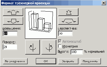 Настройку точки обзора и поворот объемной диаграммы можно производить мышью или с клавиатуры.